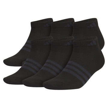 Stay light on your feet with the adidas Men's Superlite 3.0 6 Pack Low Cut Socks. They're made with durable lightweight yarns that offer a close fit. Arch compression bands secure the feet for extra support. Moisture-wicking yarns help feet stay cool adn dry so you can go the distance. Technical Benefits: Moisture-Wicking | Arch Compression Materials: Recycled Polyester Sizes: LARGE,XLARGE C...