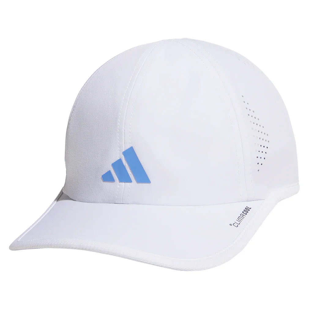 The Adidas Juniors' Superlite 3 Hat offers a relaxed and sporty look for any outfit. With a perforated six-panel design, this cap allows for airflow on active days. The adjustable hook-and-loop strap ensures a secure fit for kids. Materials: Polyester Color: White and Blue Fusion One size fits most.