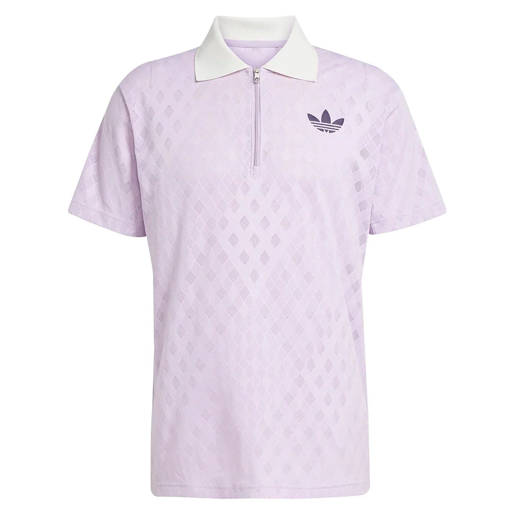 Step onto the court with championship confidence in the adidas Men's Pro Court Polo, engineered for professional tournament play. This sophisticated polo showcases the legendary adidas trefoil logo perfectly positioned on the chest. The refined polo design features a classic collar and quarter-zip closure, delivering a polished aesthetic while maintaining the performance edge that pros require. An intricate textured diamond pattern throughout the fabric adds subtle visual interest while maintaining sophistication.