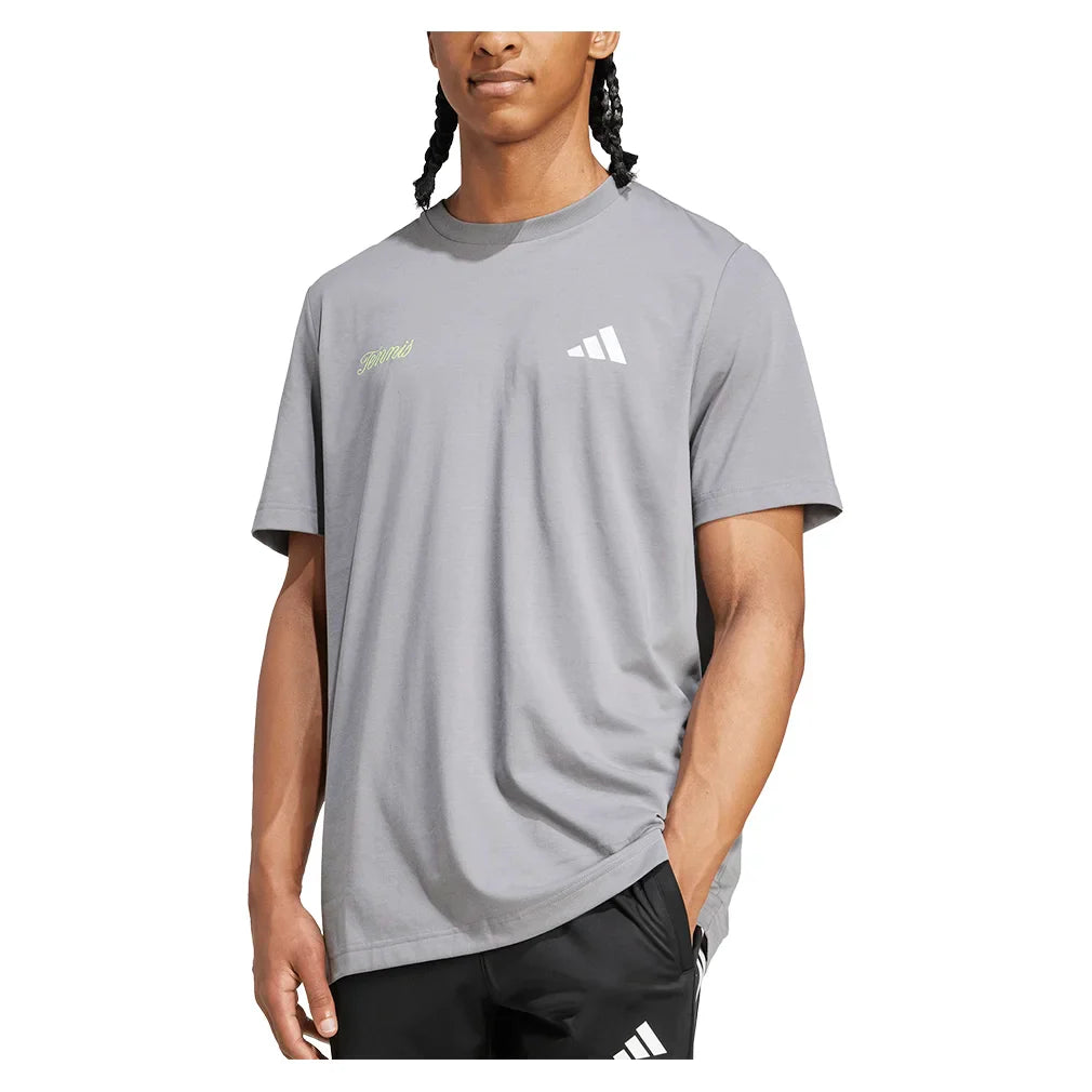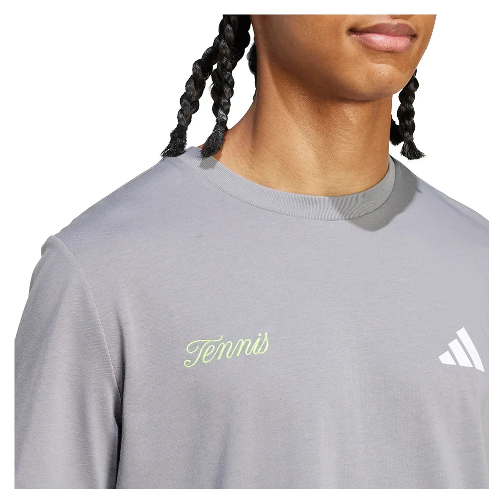 Take bite out of the Big Apple with the adidas Men's US Graphic Court Tee. Its back graphic showcases the famous New York cityscape. A crew neck design offers a familiar feel that lets you enjoy games on the court or on the sidelines in perfect comfort.