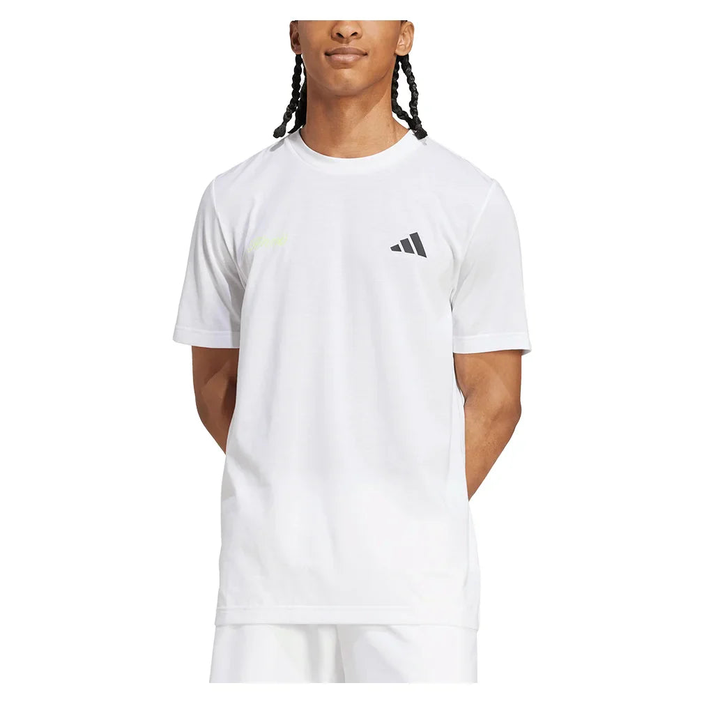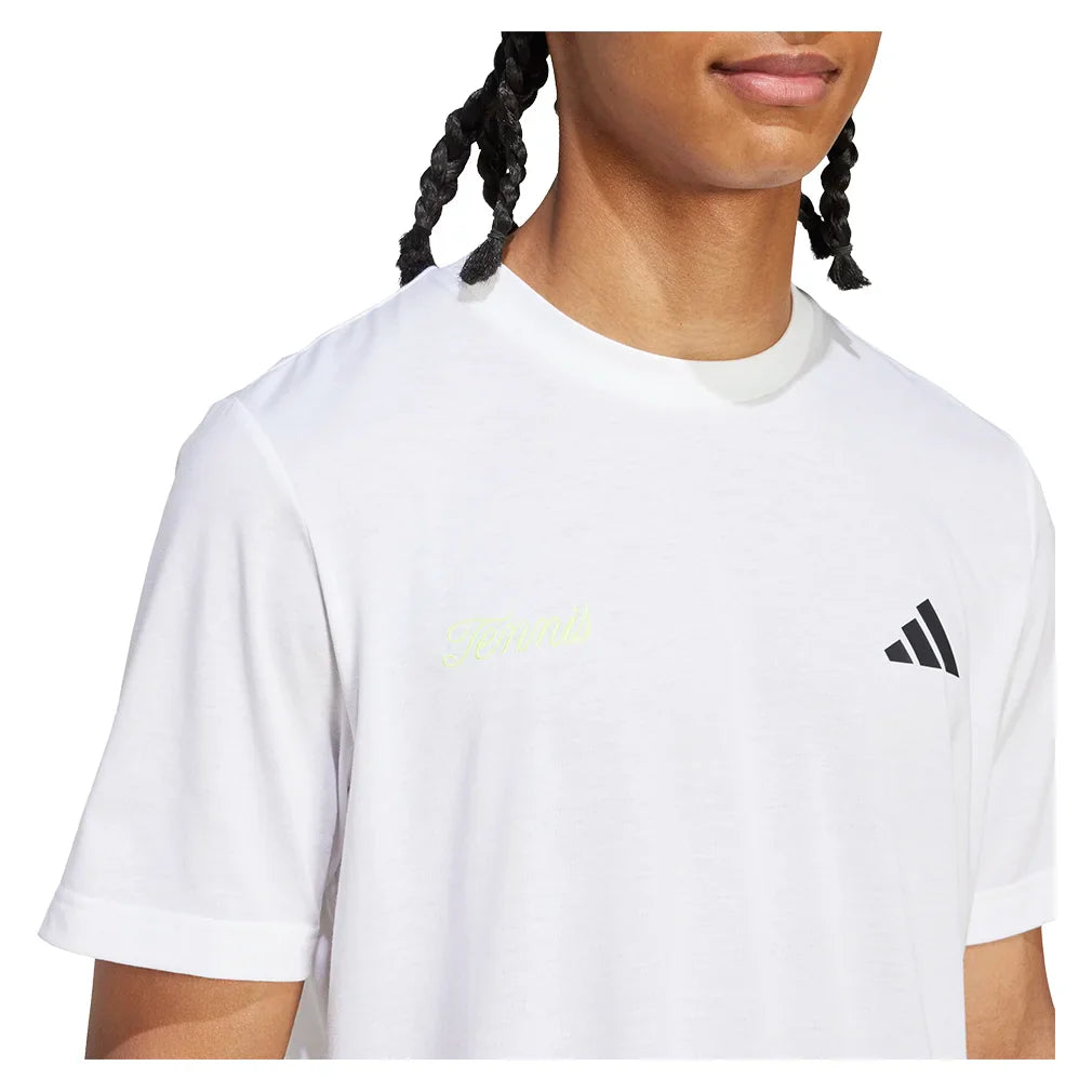 Take bite out of the Big Apple with the adidas Men's US Graphic Court Tee. Its back graphic showcases the famous New York cityscape. A crew neck design offers a familiar feel that lets you enjoy games on the court or on the sidelines in perfect comfort.
