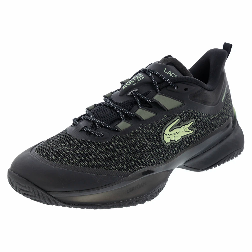 The Lacoste Men's AG-LT23 Ultra Night Court Shoes offer tour-level stability for high-performance Court players. The lightweight and responsive design is designed to push your abilities further than ever before. Pebax technology provides energy return via the LSRFoam midsole, which works in concert with the TPU plate chassis and heel stabilizer for enhanced stability. The upper is constructed of an engineered 'Pique' woven mesh for comfort and breathability, and the outsole works for all surfaces thanks to Lacoste's brand-new rubber compound, LineGrip. The AG-LT23 Ultra is a worthy update from Lacoste. Look for this shoe to be worn by Lacoste's best players on tour.