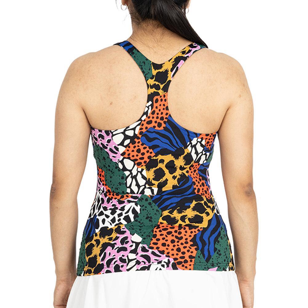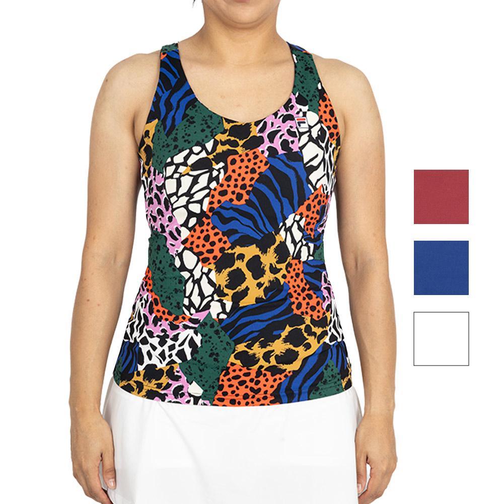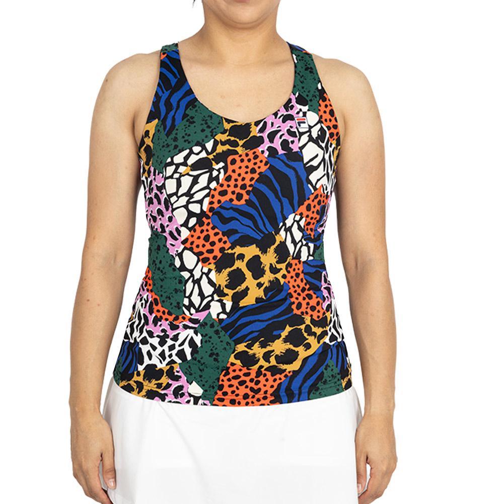 Unleash the inner beast with the Fila Women's Essentials Racerback Tank. This top includes an inside self-fabric bra with removable cups to provide support that you can customize to your needs. Stretchy, moisture-wicking fabrics give a performance boost alongside anti-odor properties to help you stay confident on the court. Stay safe under the sun with the help of UPF 50+ sun protection, minimizing the damage of harmful UV rays to your skin. Be sure to try out the Safari pattern that combines many bold animal-inspired prints for a bold and striking debut!