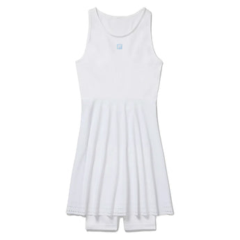Experience a new level of comfort and style as you stand out on the court with the Fila Women's Center Court Seamless Court Dress White and Reflective Silver. Designed with a flattering scoop neckline and graceful pleats, this dress blends elegance with superior performance. A seamless construction promotes breathability and a chafe-free feel, while the built-in shorts provide coverage and confidence during every serve and volley. Crafted with moisture-wicking technology, it keeps you cool and dry throughout intense matches. Perfect for match day, the Centercourt Seamless Dress ensures you stay focused on your game and look great doing it.