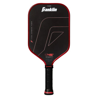 Your legacy begins with the Franklin C45 Dynasty 14mm Pickleball Paddle. This paddle is great for advanced players seeking put-away potential, as it's designed for explosive hitting power. Its elongated handle adds reach while the narrow sweet spot is positioned near the top for maximum velocity. Franklin's signature PowerFlex core improves structural integrity while providing a satisfying pop. The T700 carbon fiber hitting surface is woven at a 45 degree angle to maximize spin potential. A unibody construction made by a double thermoformed process improves the paddle's durability, ensuring the paddle lasts you for match after match.
