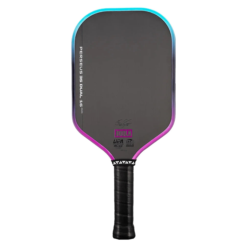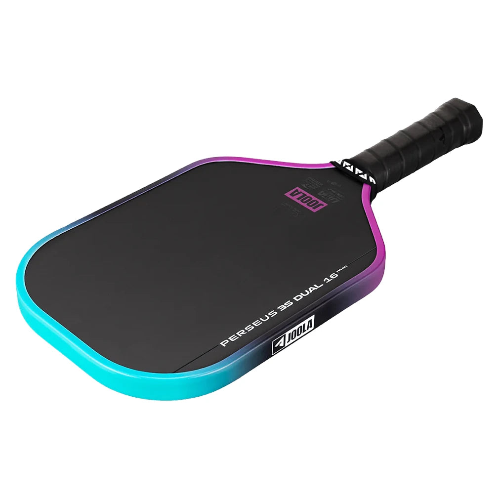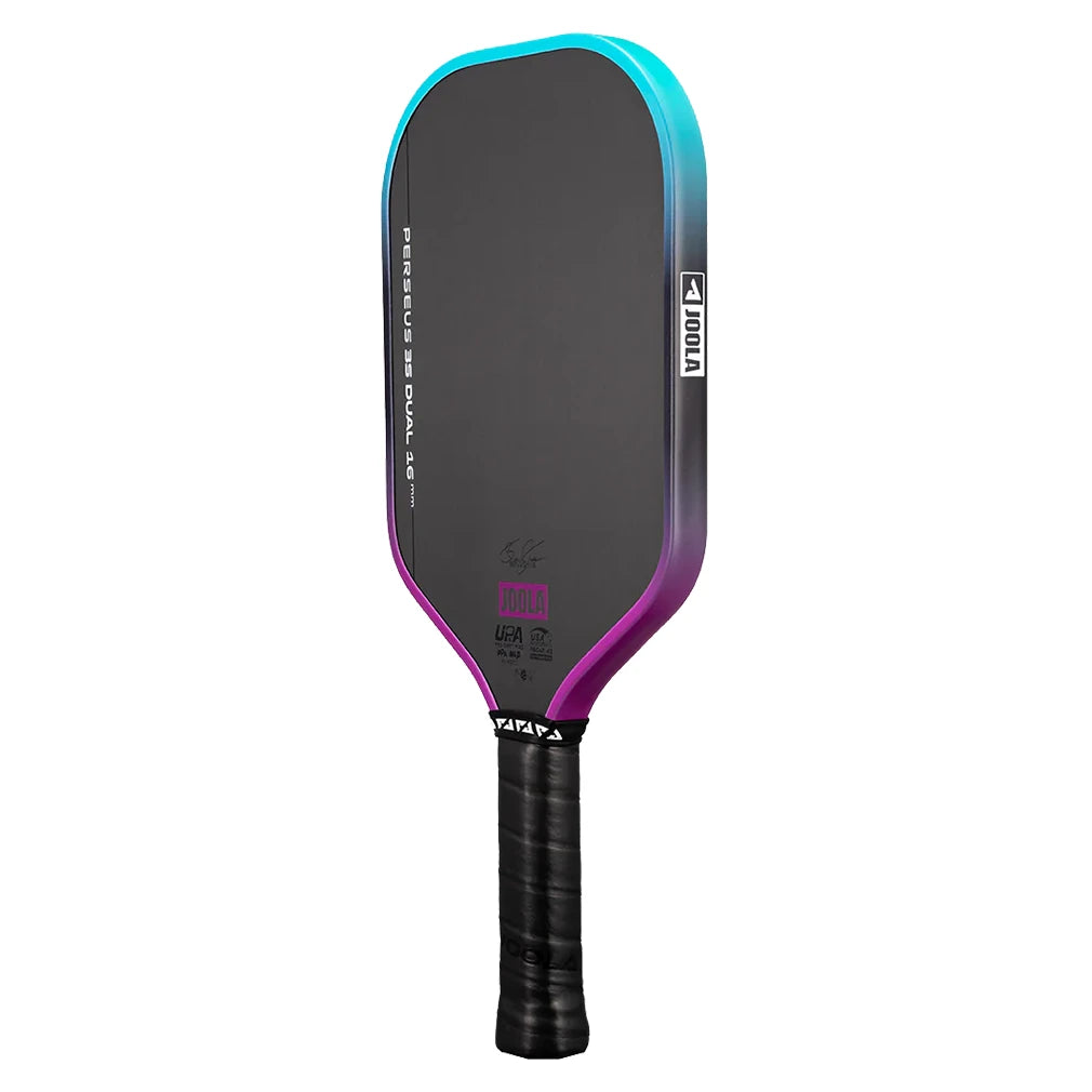 The Joola Perseus Pro 3S Dual 16mm Pickleball Paddle has an elongated and squared head shape to combine stability with hitting power. It features Joola's Propulse Core for explosive hitting power, which combined with the Hyperfoam Edge Wall for improved stability and sweet spot size gives you the finesse needed to sink in a finishing hit. Use the NFC chip in the handle to authenticate your padd...