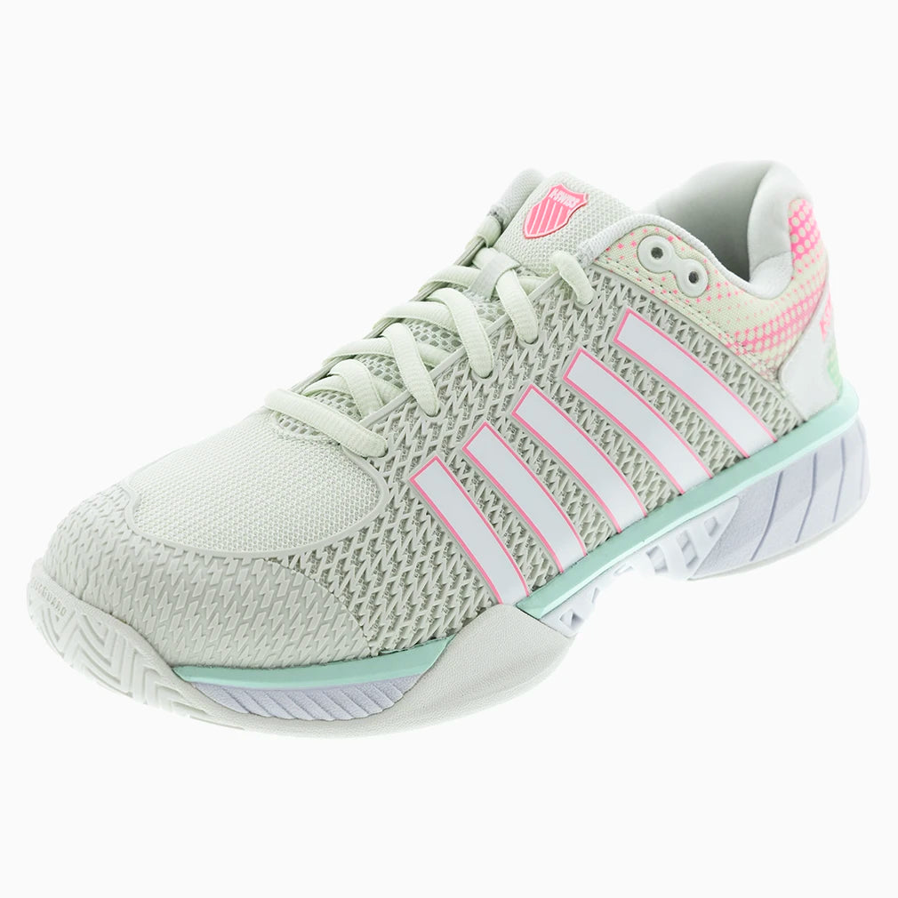 Get the K-Swiss Women's Express Light Wide Pickleball Shoes. This lightweight pickleball shoe takes inspiration from the popular Hypercourt Express Court shoe giving players ultimate comfort, and breathability on the court. It's specifically designed to support on-court movement and performance needed for the sport. It's an all-around shoe, perfect for the new or frequent player, and features a customized Pickleball sock liner.