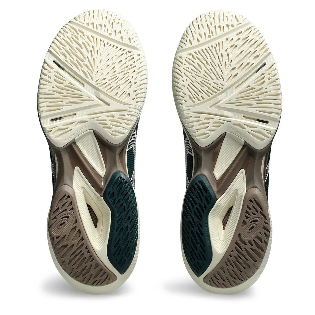 Outsole: The new SPEEDTRUSS™ system reduces the weight of this speed shoe's sole unit, yet retains the structural integrity of the shoe. AHAR® rubber offers solid durability, while ASICSGRIP™ technology improves traction on the court. The Solution Speed FF 3 keeps the prior model's 10.5mm heel-to-toe drop.