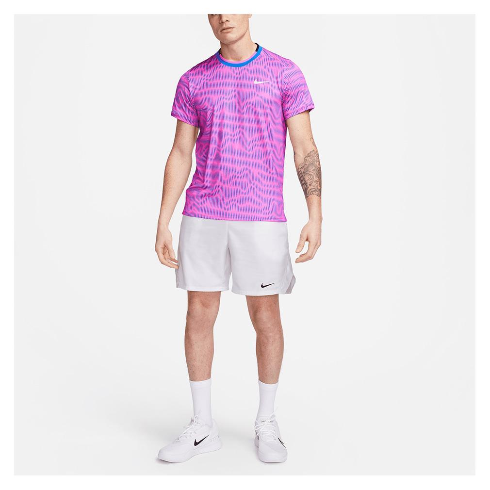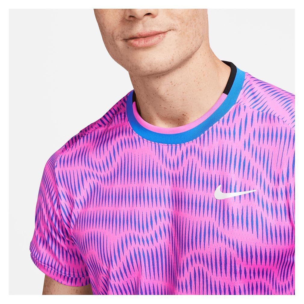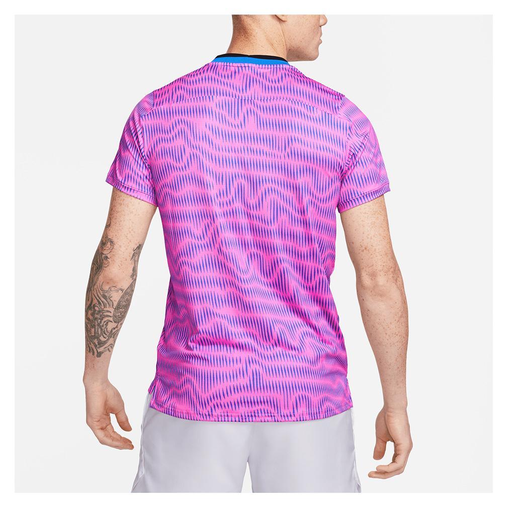 The Nike Men's Court Dri-FIT Breathe Advantage Top brings back a classic design with more improvements. Its hybrid neckline combines the look of a V-neck with the comfort of a crew. Colored side panels and piping detail along the collar bring more flair to the design. The knit fabric is made using at least 75% recycled polyesters, boasting incredible stretch and breathability. With Nike Dri-FIT sweat-wicking technology, you can stay fresh and cool even throughout the most intense matches.