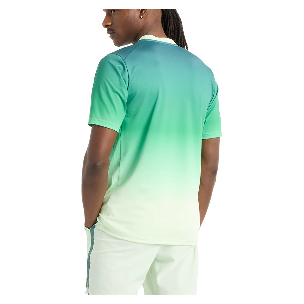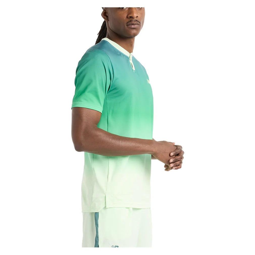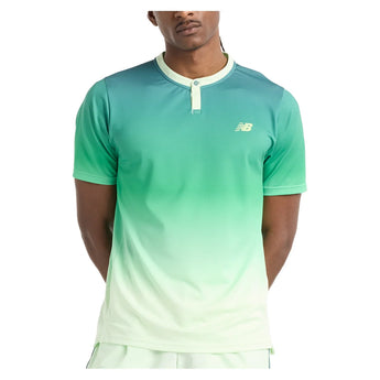 Freshen up your look with the New Balance Men's Printed Tournament Court Top. This crew neck shirt is designed with a 1 button placket that makes it easy to adjust the opening both for style and ventilation. NB Dry fabrics wick sweat and provide flexibility for maximum on-court performance.