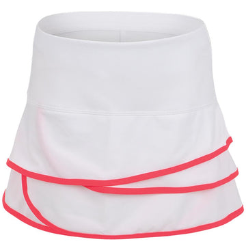 Shell play her heart out in the Lucky In Love Girls Scallop Skort! The scalloped hem adds flair to the classic white of this skort. Built-in shorts will keep her covered and supported, while moisture-wicking technology will keep her cool and dry. Pair this skort with the Lucky In Love Girls V-Neck Cutout Tank for the perfect on-court look!