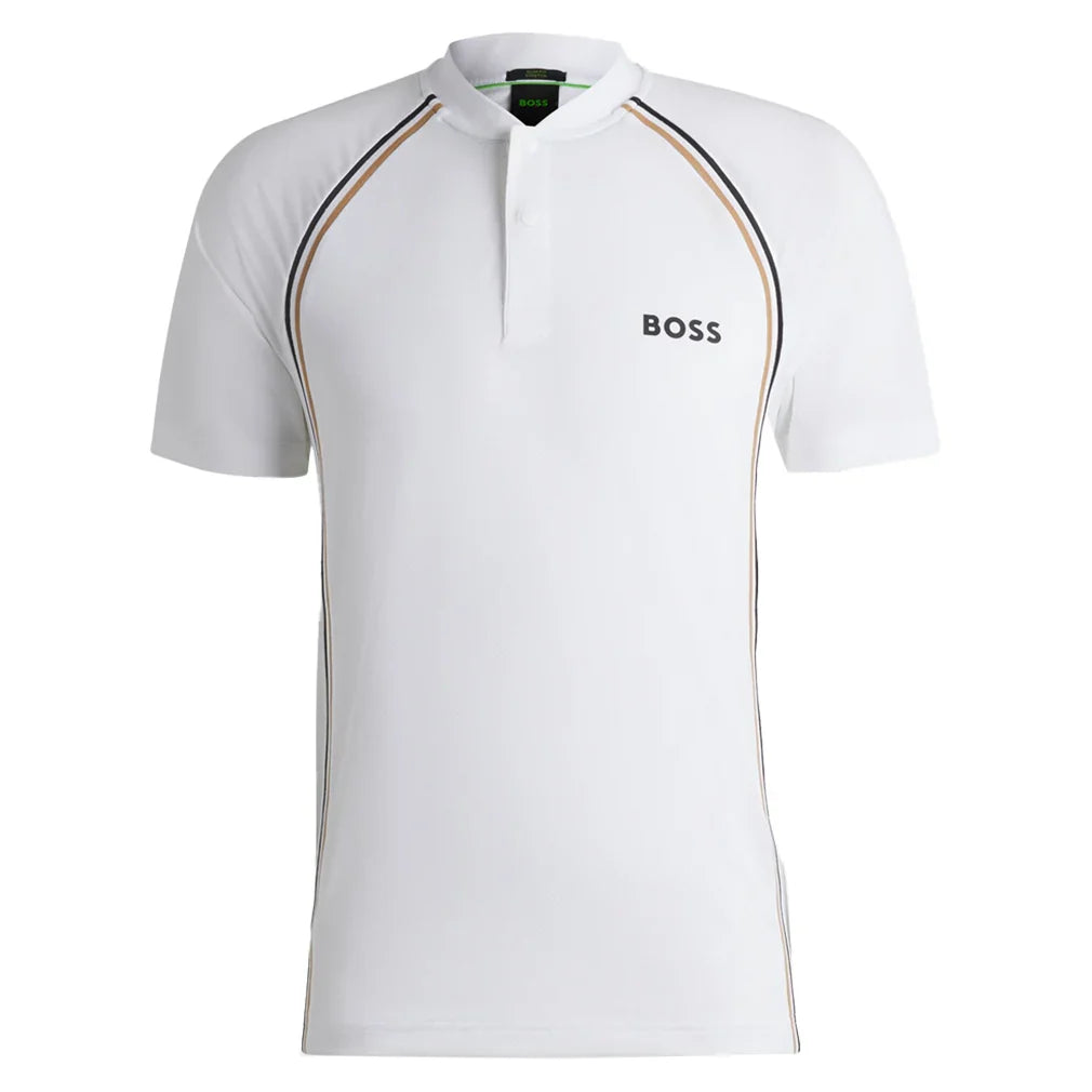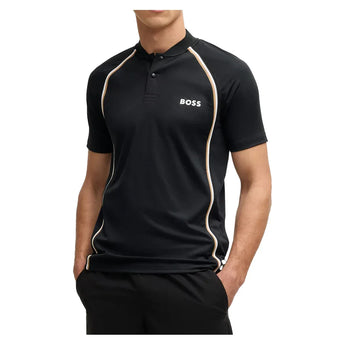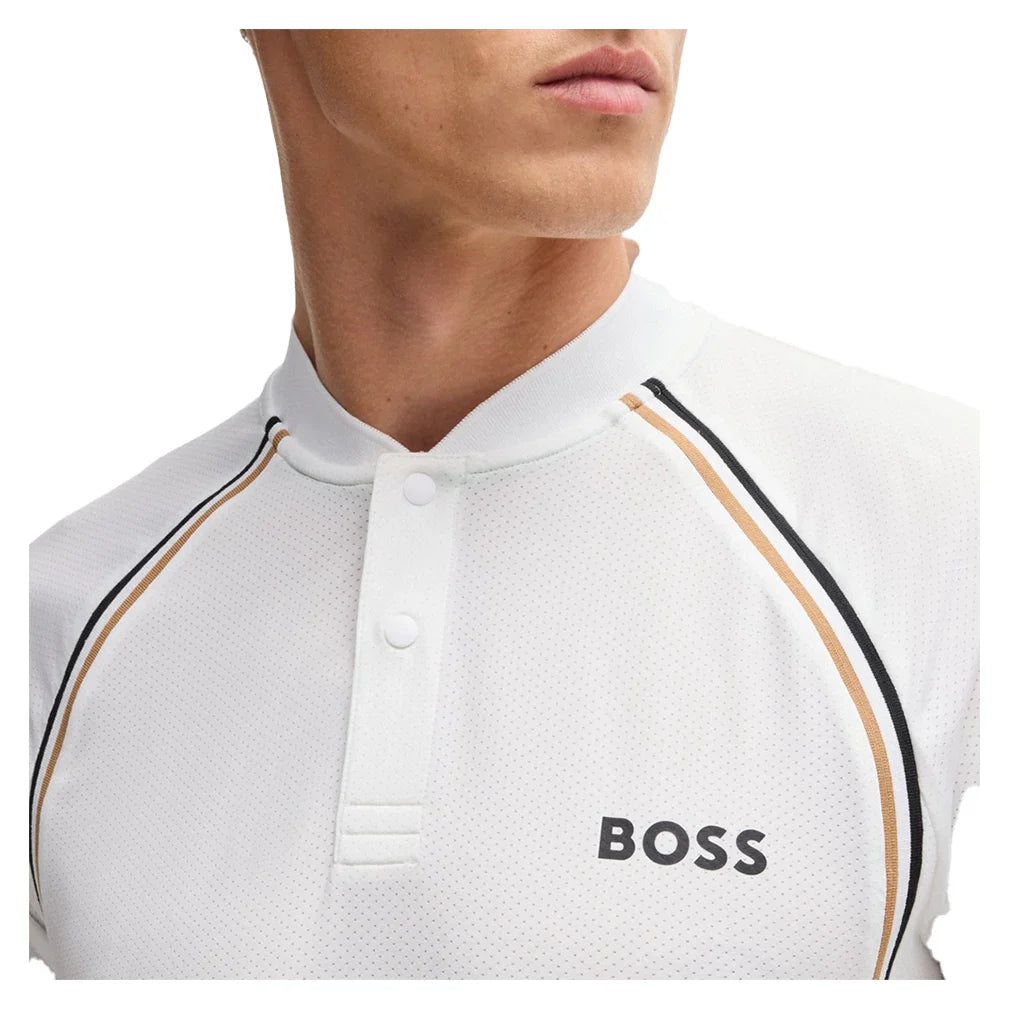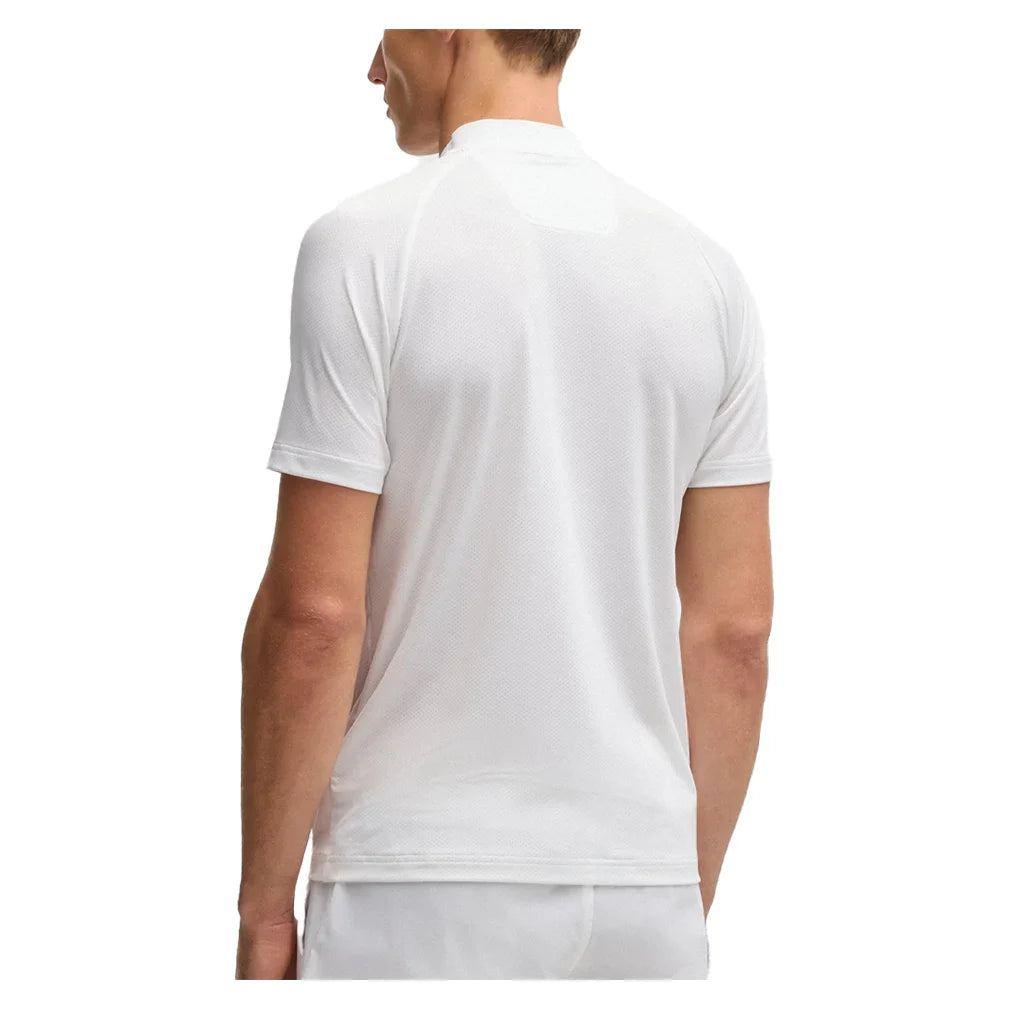 Enter the court with style and elegance with the Hugo Boss Men's Pariq TOC Mesh Court Polo. Made from a comfortable blend of recycled polyester and elastane, this Court polo is not only fashion forward but also made for performance. Its stretchy and breathable material ensures you can play without fatigue. Whether you're playing in a tournament or sitting in the grandstands at centre court, look and feel your best.
