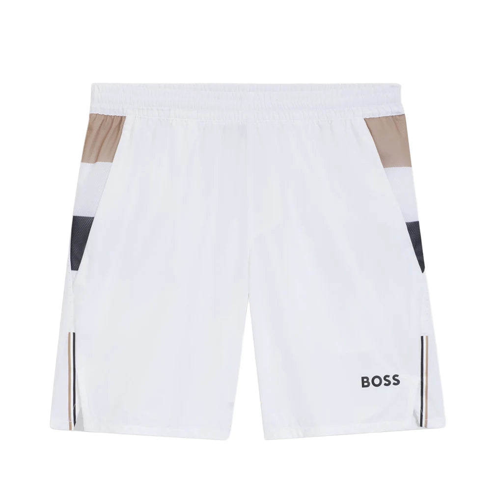Stay sharp and move with ease in the Hugo Boss Men's T-Match 9 Inch Court Short. Designed for dynamic performance, these lightweight shorts feature a flexible, stretch-woven fabric that lets you cover the court without restriction. Whether you're battling through a tough set or dialing in your footwork during practice, the T-Match shorts deliver all-day comfort and effortless style. Clean lines...