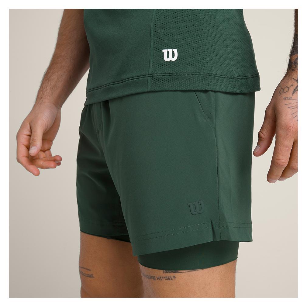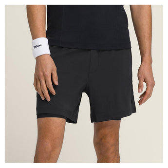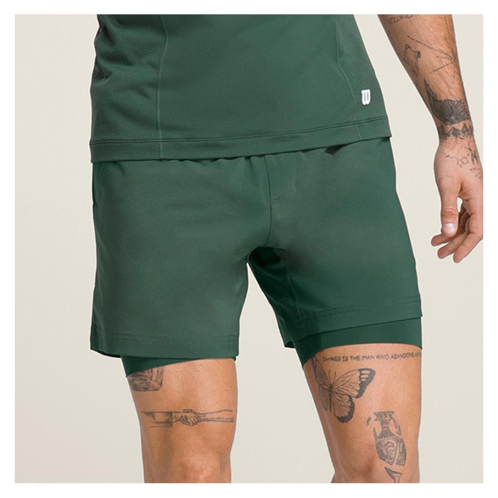 Get double duty with the Wilson Men's Doubleday 7 Inch Short. This 2-in-1 combo comes with a pair of inner compression shorts for added support and comfort. They're designed with an athletic fit in mind and the hem comes up to the low-thigh. Stretchy fabrics enable a wide range of movement for high performance that lets you chase down each point. Quick-drying properties with a breathble design keep athletes cool so they can stay ath the top of their game.