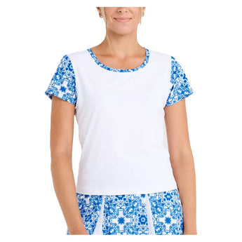 Women's Short Sleeve Top White and Sandra Tiles