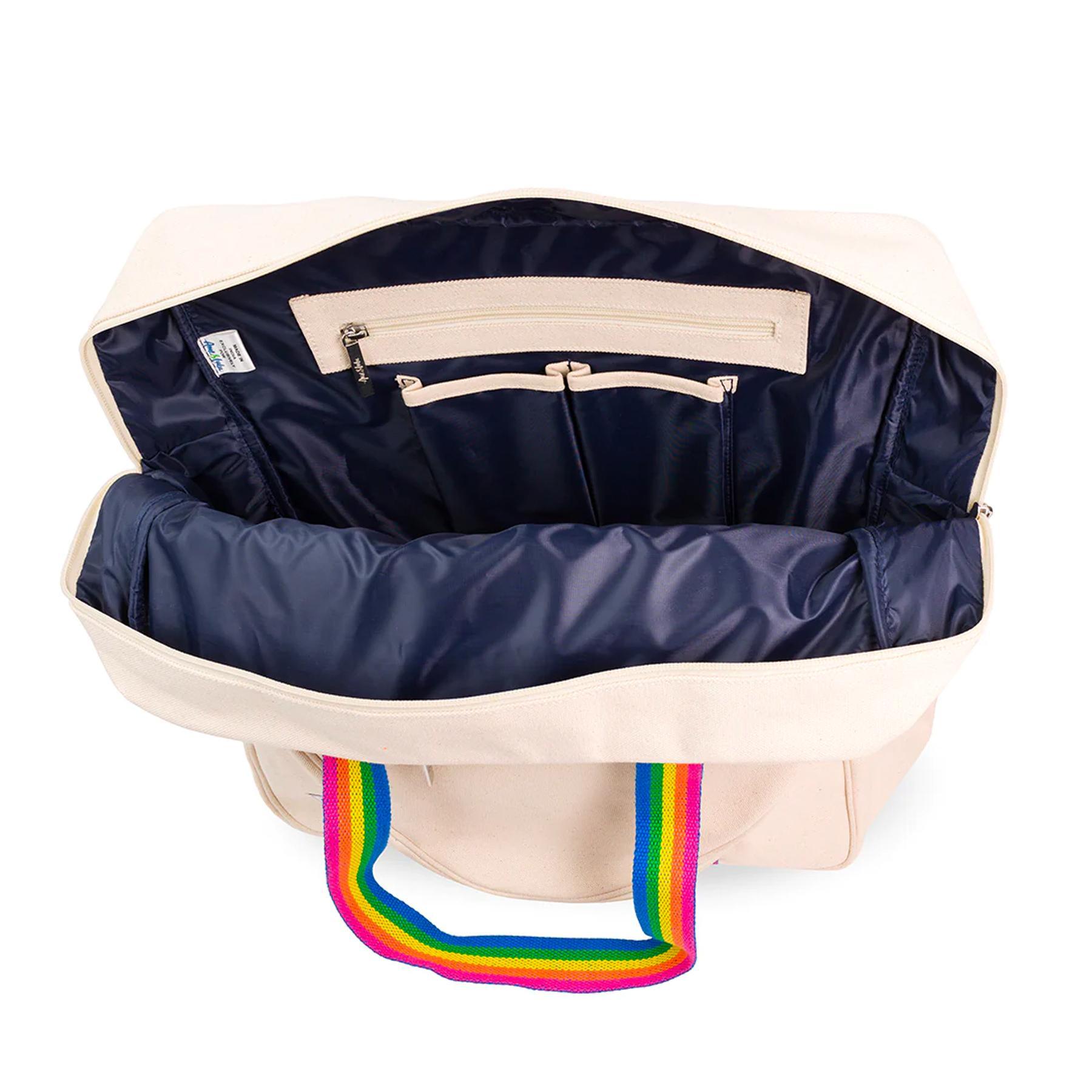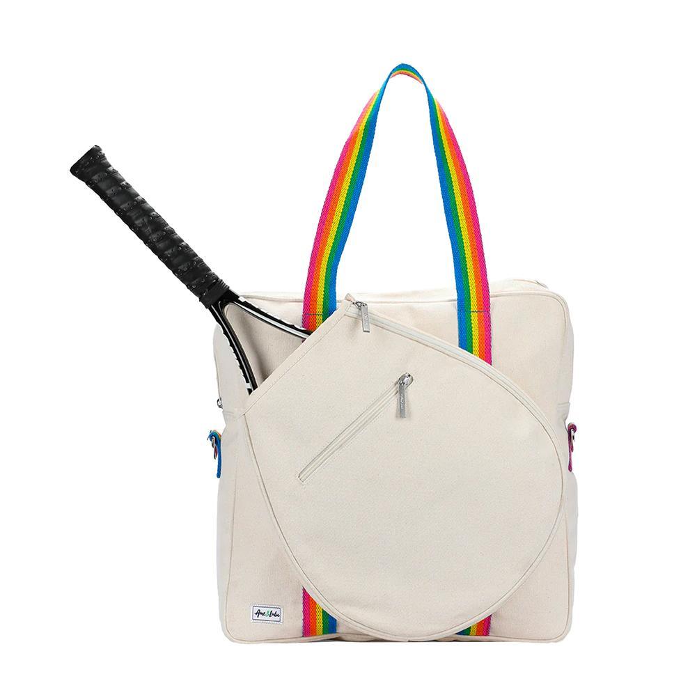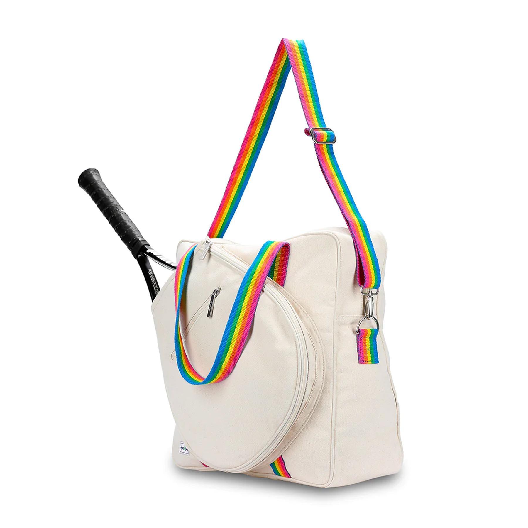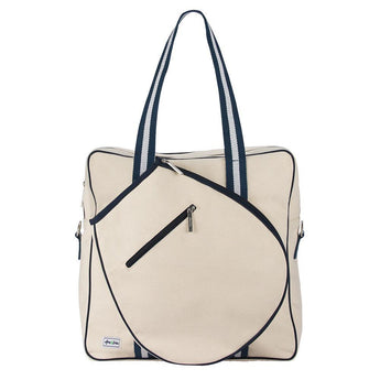 The Ame & Lulu Women's Hamptons Tour Bag is the ultimate bag for players keen to make a statement on and off the court. It features a sturdy canvas exterior with a zip closure, a removable and adjustable shoulder strap with a 10" drop, and multiple interior and exterior pockets. An exterior zippered compartment fits two racquets.