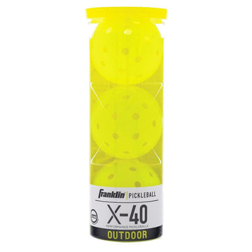 The Franklin X-40 Outdoor Pickleball is a premium quality ball that will play well on any outdoor surface. The accuracy of the machine drilled holes will assure that each ball will play consistently one after another. The X-40 is a premiere pickleball on the market and it is the official ball of the US Open. 3 per pack 26 grams 74 mm diameter 40 holes Color: Optic USAPA approved