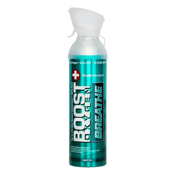 Take a breather with the Boost Oxygen Supplemental Oxygen canister. Prescription-free supplementary oxygen helps with aerobic recovery to ease stress, uplift your mood, and refresh your senses. Whether you need to catch your breath between sets, live in a high-altitude area, or there is poor air quality, an extra boost can help you feel better and recover faster. Each Large-sized canister provides enough air for up to 200 1-second-long inhalations.