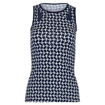 Keep your game well-rounded with the Tail Women's Ciella Court Tank Oval Geo. This crew neck tank featuring shoulder inserts is designed with overlapping oval shapes and a scoop neck. Comfortable and stretchy, you won't have any problem maneuvering around the court while you play. UPF 50+ coverage keeps your skin safe from sun damage, blocking out up to 98% of harmful UV rays.