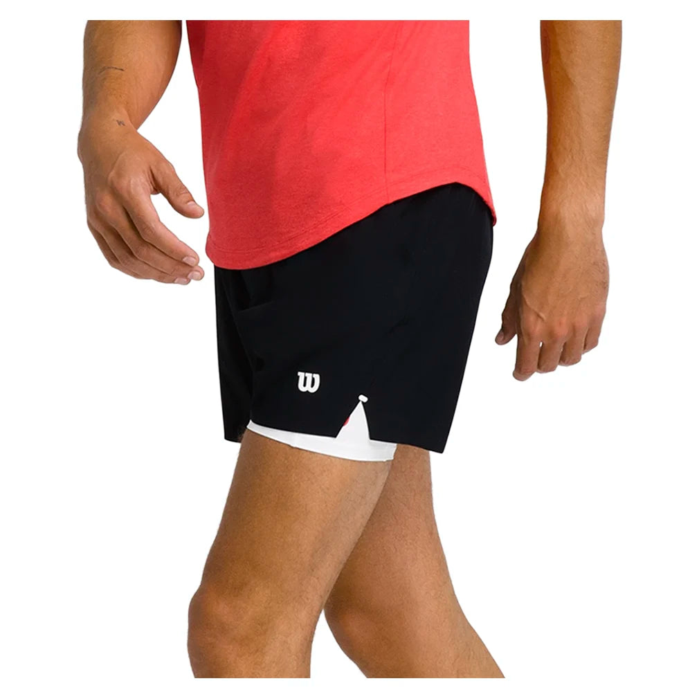 Wilson has updated the Men's Tournament 5 Inch Court Short V2 for ultimate on-court performance. The unlined design allows for more flexibility, while split side seams improve lateral mobility. Stretchy and lightweight fabrics provide comfort and flexibility, while bonded bar tack stitching improves the garment's durability. Angled open hand pockets keep Court balls toward the side seams during play, preventing them from being a nuisance during crucial moments in a match.