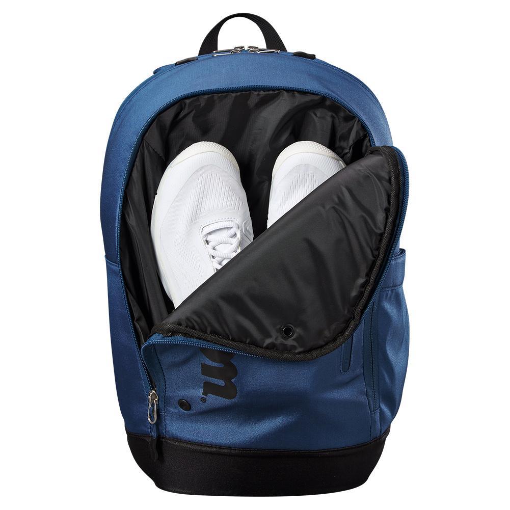 The Wilson Ultra v4 Tour Backpack perfectly complements the look of the new Ultra v4.0 racquets. There is plenty of functionality for a variety of players. The durable yet lightweight polyester construction features one racquet compartment in the back up to 2 rackets, a spacious main compartment with a padded laptop sleeve and organizational slip pockets, and a ventilated pocket in front ideal for shoes or dirty clothes. Travel lightly and conveniently with elastic expansion on the side for water bottles or ball cans.