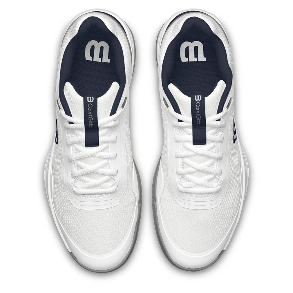The Wilson Men's CourtGlide Court Shoes are built for step-in comfort. The Courtglide is built using the very popular Rush last, which gives the shoe a familiar locked-in fit with good ventilation. The RDST midsole delivers the right amount of shock absorption and agility. The modified herringbone outsole pattern makes the CourtGlide a winner on all court surfaces, including clay. This is the p...