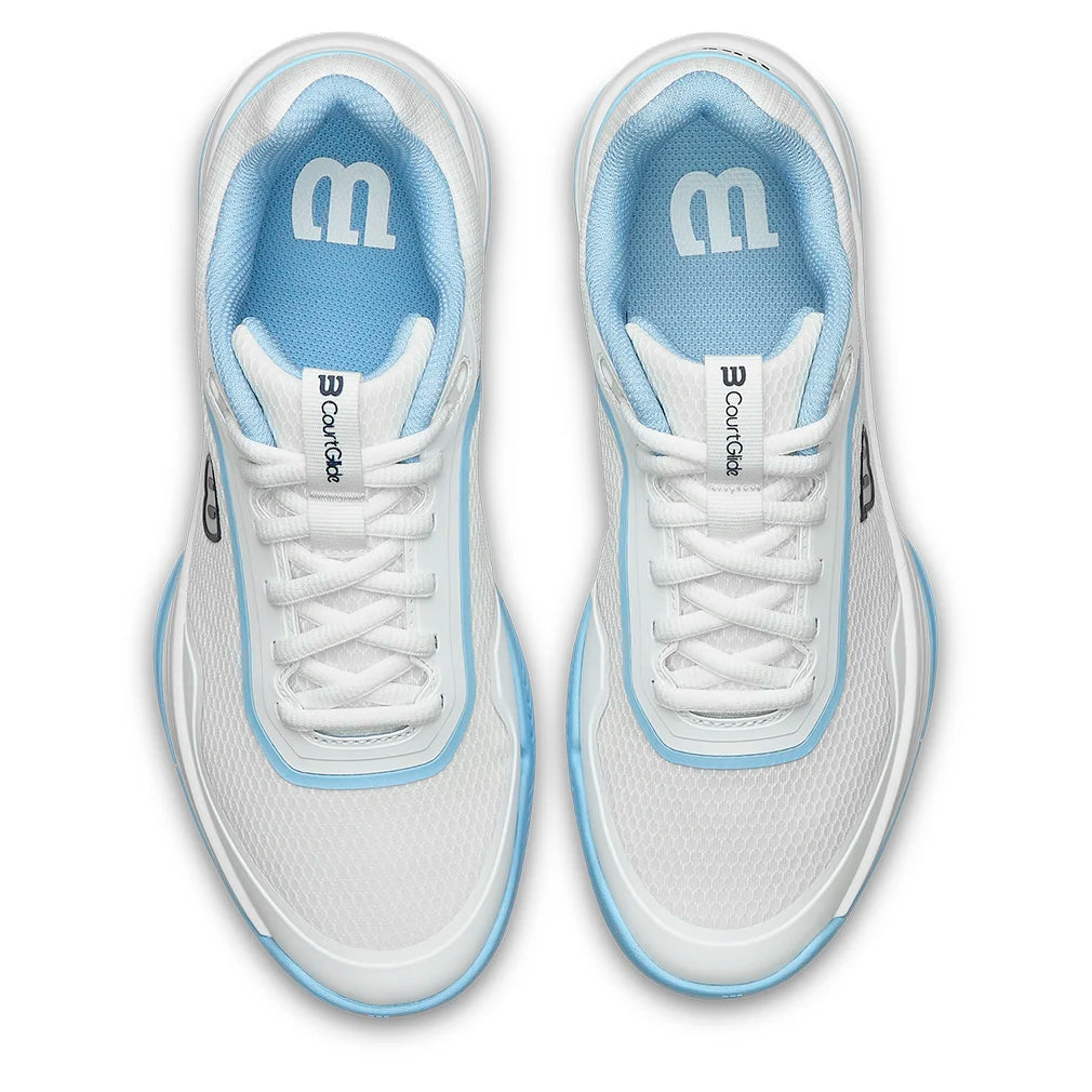 The Wilson Women's CourtGlide Court Shoes are built for step-in comfort. The Courtglide is built using the very popular Rush last, which gives the shoe a familiar locked-in fit with good ventialtion. The RDST midsole delivers the right amount of shock absorption and agility. The modified herringbone outsole pattern makes the CourtGlide a winner on all court surfaces including clay. This is the perfect shoe for players who prefer a comfortable court shoe for casual play.