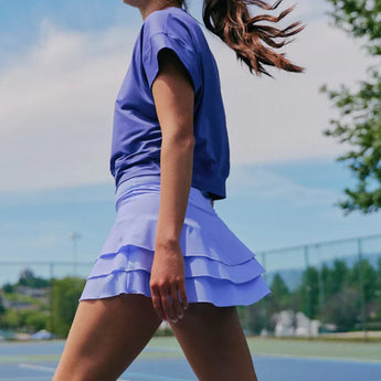 Step onto the court in style with the Lija Women's Nevo Stamina 13 Inch Tennis Skort, designed for ultimate comfort and performance. The three-tiered skirt adds a dynamic, feminine touch, creating fluid movement as you play. A wide elastic waistband provides a secure, stay-put fit, while built-in undershorts offer extra coverage and support. Crafted from moisture-wicking, breathable, and stretc...