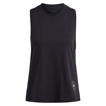 Stay cool and stylish from warm-up to cooldown in the adidas Womens Stella McCartney logo tank top. This versatile piece features a high neckline and racerback design for a sporty silhouette, while the relaxed fit and large armholes offer easy movement and breathable comfort. Made with soft, lightweight fabric and crafted from recycled materials, its a sustainable staple that delivers on both performance and everyday style. A bold Stella McCartney logo adds a modern finishing touch.
