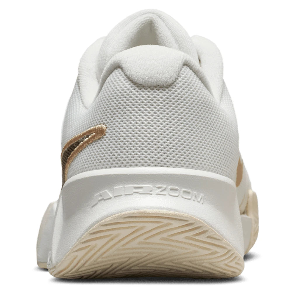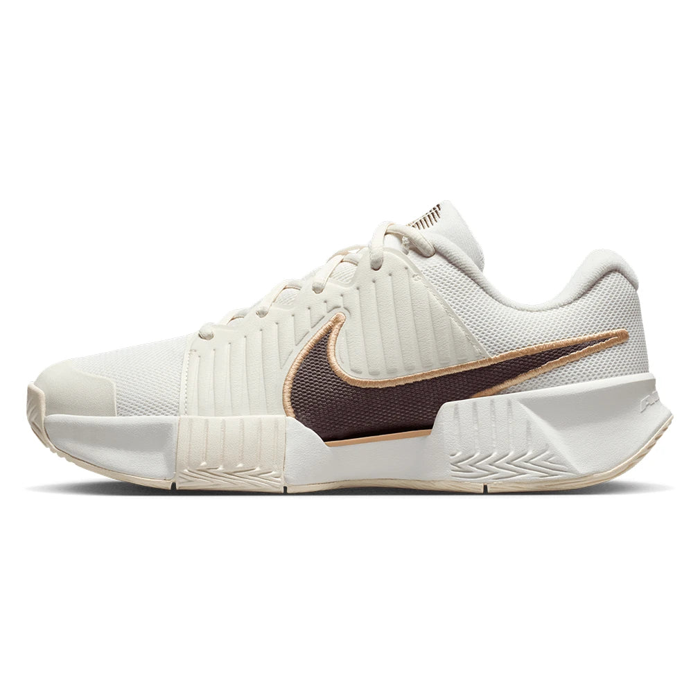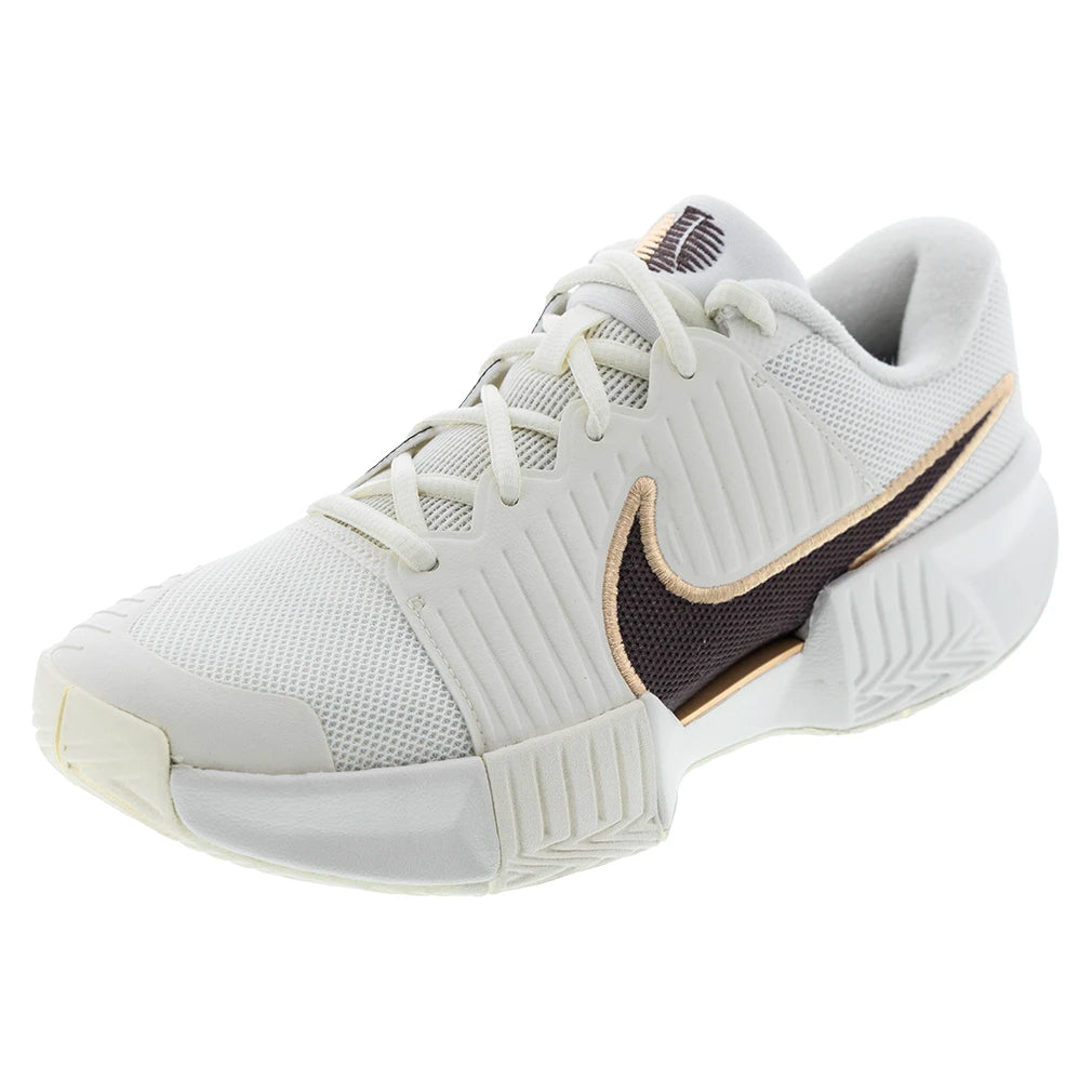The new Nike Women's GP Challenge Pro Court Shoes offer a wide base for stability and soft foam cushioning for the midsole. The stability is further enhanced by a midfoot plastic plate, which helps with quick direction changes. The medial toe has extra rubber to help withstand excessive wear and tear, and the forefoot is protected with high-abrasion rubber for added traction. The traditional U-throat design provides easy entry and adjustment, and an extra-padded tongue is constructed with breathable mesh for cool comfort.