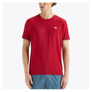 Take on new challenges with the Diadora Men`s Short Sleeve Tennis Tee. Its mesh construction also features smooth side panels to allow for breathability without sacrificing comfort. A contrasting strip at the sleeves` edge brings out an athletic look. To add the finishing touches, there is a Diadora logo print on the front chest and a brand name at the back.