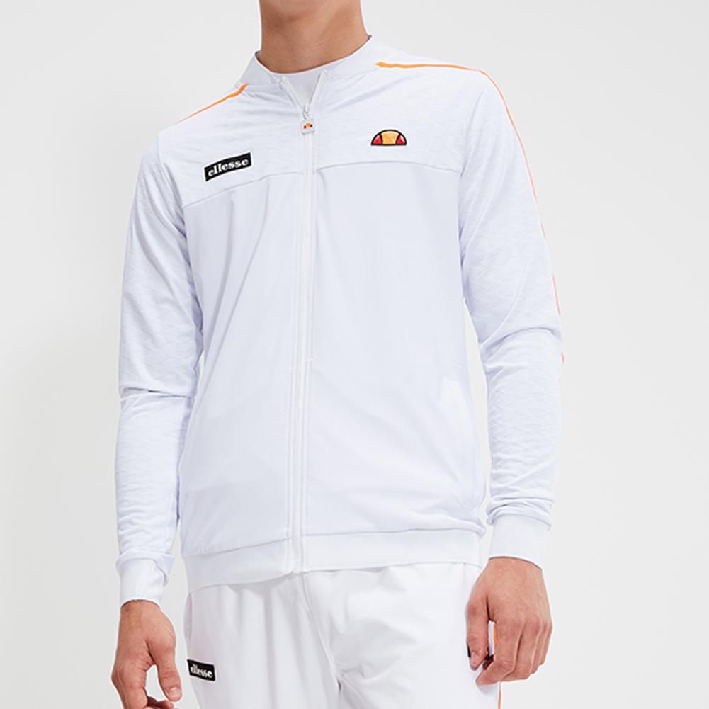 It's off to the races in the Ellesse Men's Millook Track Court Top. This full-zip jacket features a contrasting zip and laid-on knitted tape at the sleeves which are inspired by the classic racetrack style. Knitting at the hem, cuffs, and collar elevates your comfort whether you're training for the big game or warming up for the next match. Active stretch fabrics match your movements for optima...