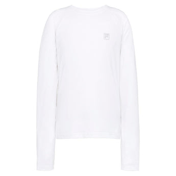 It's time for fun in the sun with the Fila Girls' Essentials Long Sleeve Court UV Blocker Top. UPF 50+ sun protection blocks out up to 98% of the sun's UV rays, which ensures full coverage to minimize sun damage to her skin. The silver rhinestone F-box logo adds a dazzling effect to the look that's easy to pair with a variety of bottoms. Flexible fabrics with moisture-wicking properties allow her to perform her best while anti-odor treatment keeps her comfortable and confident.