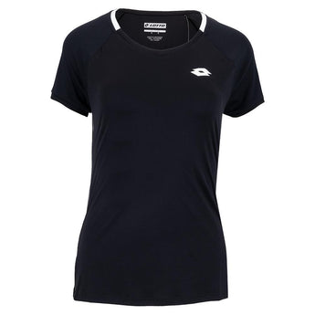 Step onto the court in style with our Lotto Women`s Squadra II Tennis Top. This tennis top has full coverage and a flattering high v-neckline. It also has a shaped fit and is equipped with Deep Dry that allows the garment to dry quickly during intense and challenging matches. Complete with striped details along the sides of the top to provide a slimming effect making the top flattering and easily paired with your favorite skort.