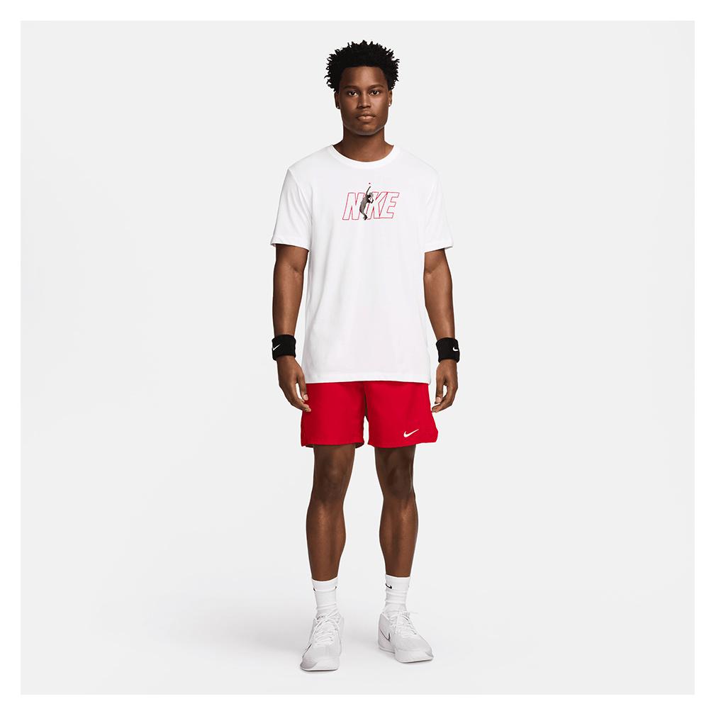 Serve up a storm in the Nike Men's Dri-fit Court Tee. This crew neck shirt features a Court athlete silhouette gearing to serve an ace to the other side. Its relaxed fit and smooth cotton-poly blended fabrics give comfort ideal for medium-impact activities, plus moisture-wicking Dri-FIT technology helps you stay cool and dry.