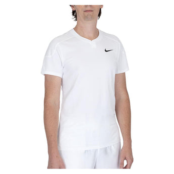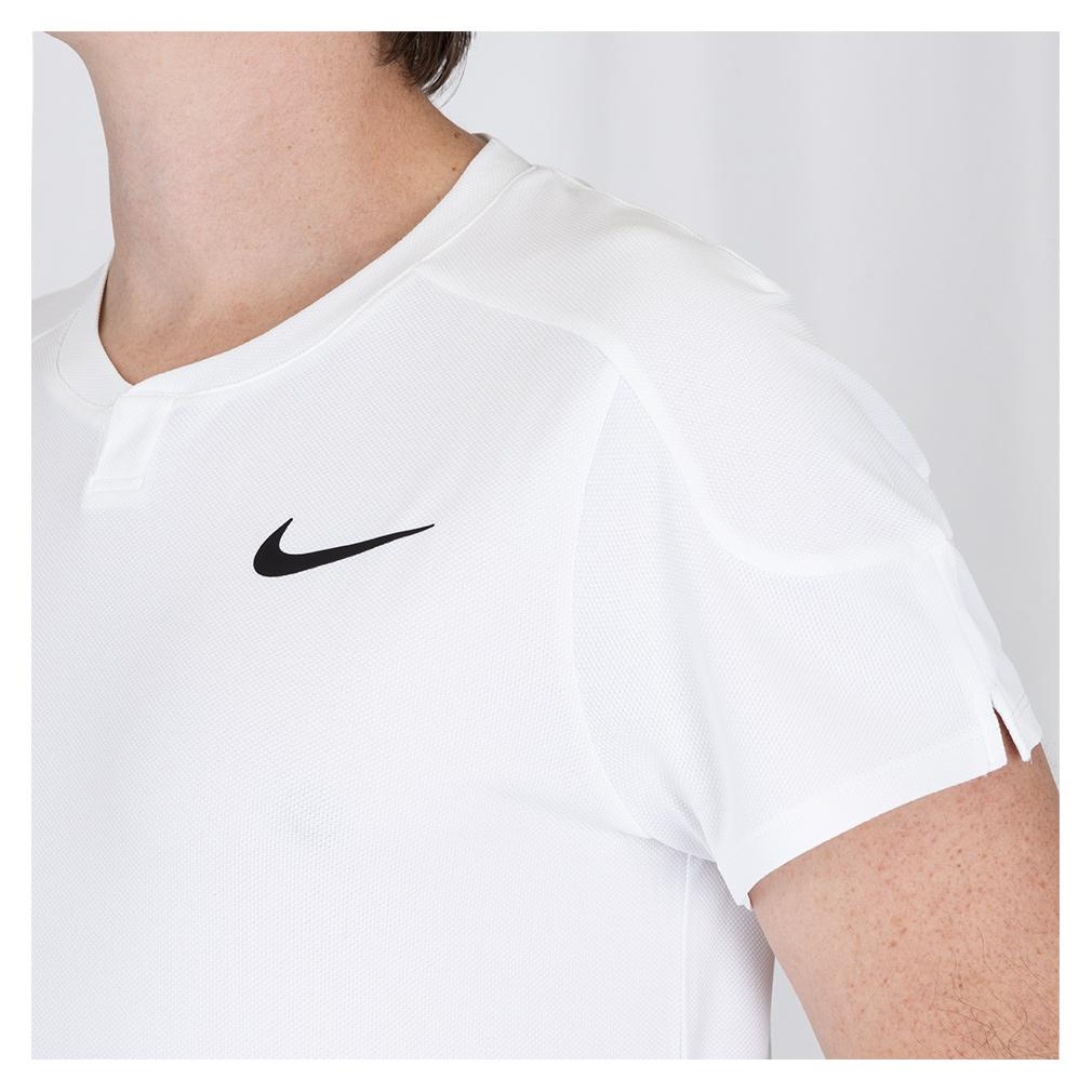 Gear up for the big leagues in the Nike Men's Slam Dri-Fit Court Top. Its innovative sleeve design features a wrap-around seam at the shoulders to provide better upper arm movements that improve your swings and serves. Smooth stretch-knit fabrics that are lightweight and breathable float above the body to limit cling during play and improve mobility. Sweat-wicking Dri-FIT technology offers fast-drying and cooling relief to help players stay at the top of their game.