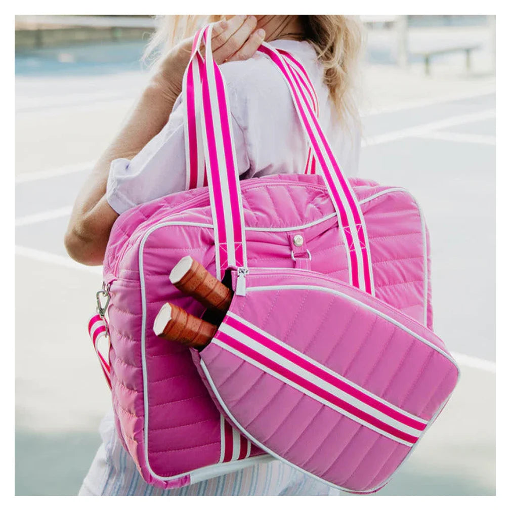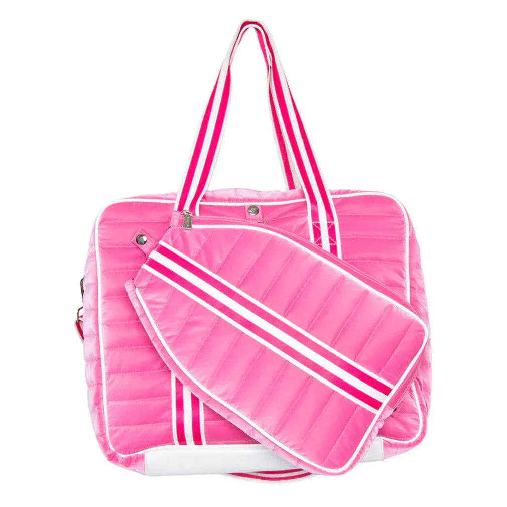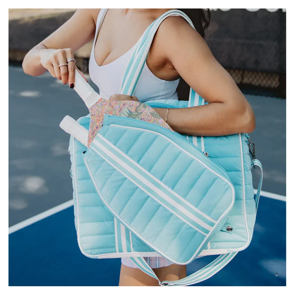 Hit the courts in style with the Katydid Pickleball Bag. With a playful, eye-catching pattern, this bag does more than set trends, it keeps players match-ready in style! It has a zipped sleeve to secure your trusty pickleball paddle, and at the top is a zipped closure to secure the rest of your equipment. Interior pockets help with organization as well. The lengthy strap is perfect for slinging...