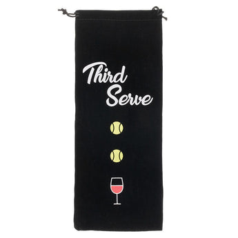 If you are looking to gift a bottle of wine to one of your friends then make sure to add our Racquet Inc. Reusable Wine Bottle Gift Bag. This is the perfect finishing touch, made of high-quality soft velvet you friends are sure to love your gift and the bag it came in. It also features drawstrings at the top with "Third-Serve" printed on the front. This is the perfect bag to show off your gift-giving style