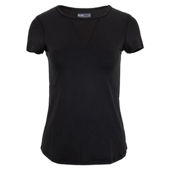 Get into the action with our Lija Women's Deep V Court Top. This top has a simple crewneck with a tonal mesh v-neck panel. It has a classic flattering silhouette and a standard short sleeve length. The tee-shirt has a skimming fit and is fully equipped with moisture-wicking technology, quick-drying fabric, and four-way stretch.