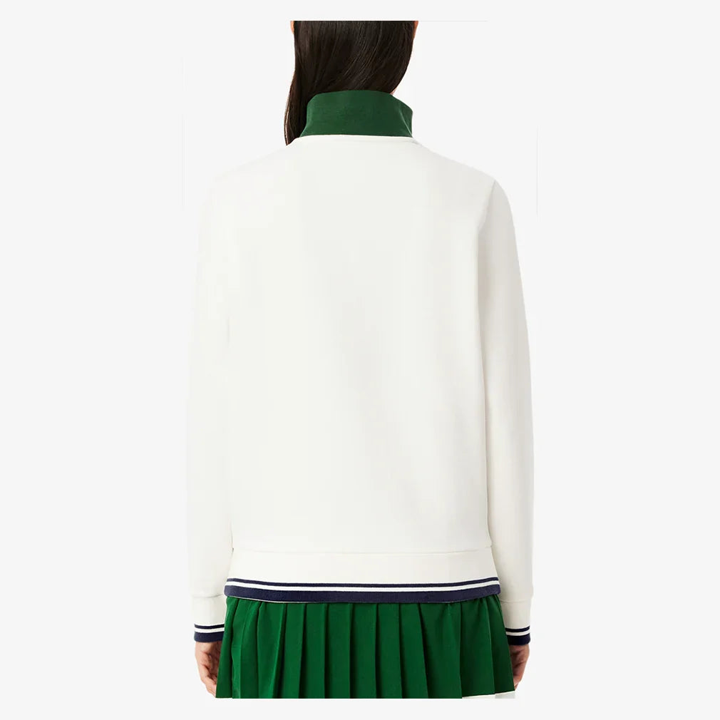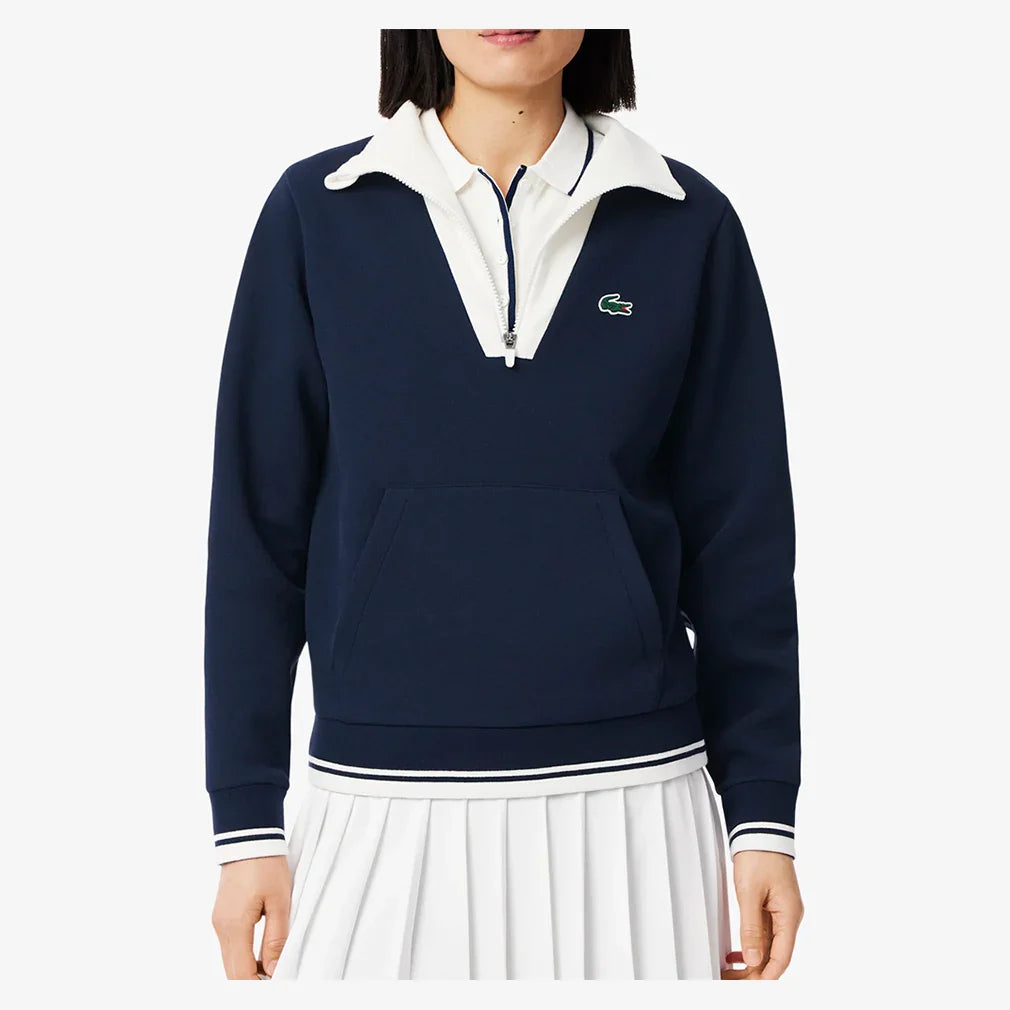 Stay cozy and in style in the Lacoste Women's Heritage Quarter Zip Court Pullover. Designed for versatility, this pullover offers a regular fit that’s both stylish and cozy, making it perfect for warming up on the court, cooling down post-match, or casual off-court wear. Crafted from a premium blend of 52% organic cotton, 42% polyester, and 6% elastane, it combines sustainability with performan...