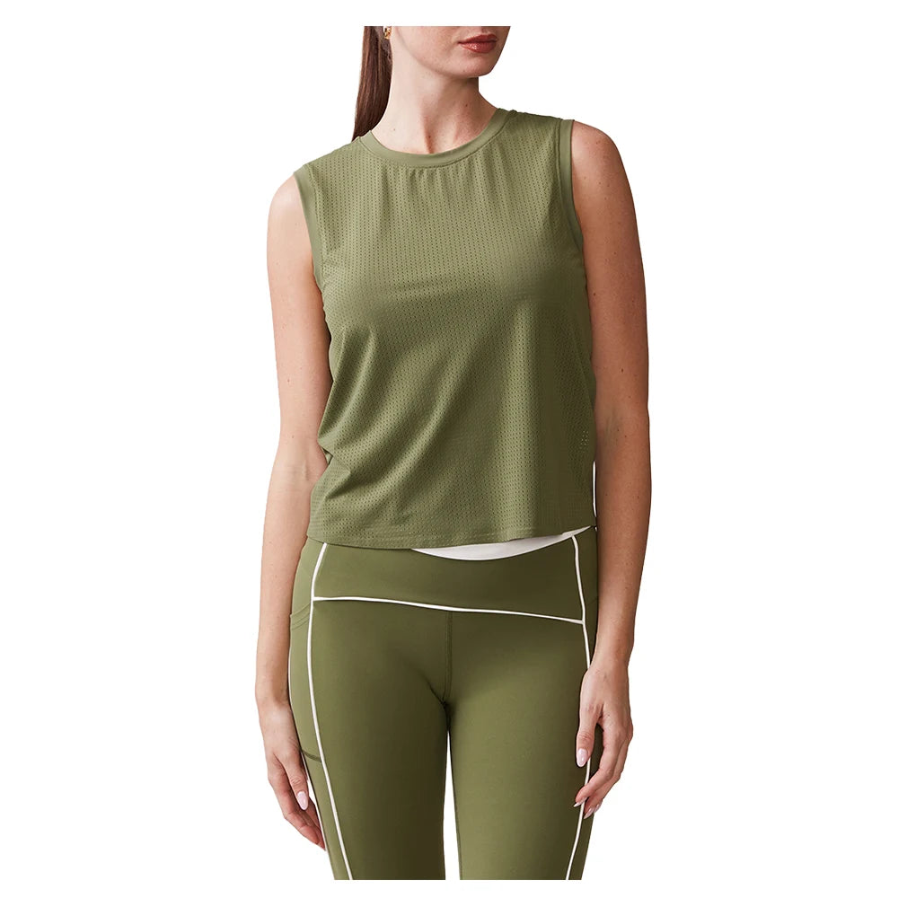 Women`s Perforated Racer Tennis Tank Deep Olive