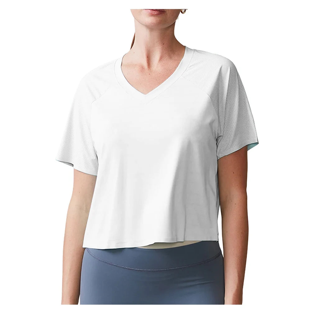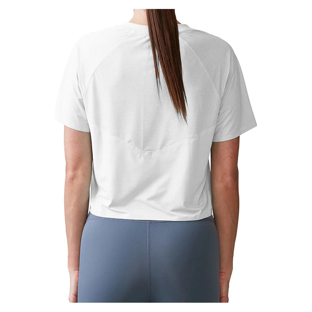 Get into the game in our Thrive Societe Women's UPF Crop Performance Court Tee offers modern style with comprehensive sun protection for outdoor play. Strategic perforation in targeted areas that delivers optimal breathability while maintaining coverage, keeping you cool during long matches under the sun. The high neckline and full back design provide maximum UPF protection where you need it most, while the cropped silhouette hits perfectly at the hips for a contemporary athletic look. Moisture-wicking technology actively pulls perspiration away from your skin, and quick-drying fabric helps maintain comfort between points. Four-way stretch construction allows complete freedom of movement through every swing and sprint, making this cropped tee an excellent choice for players who want current fashion trends combined with serious performance features and sun safety.